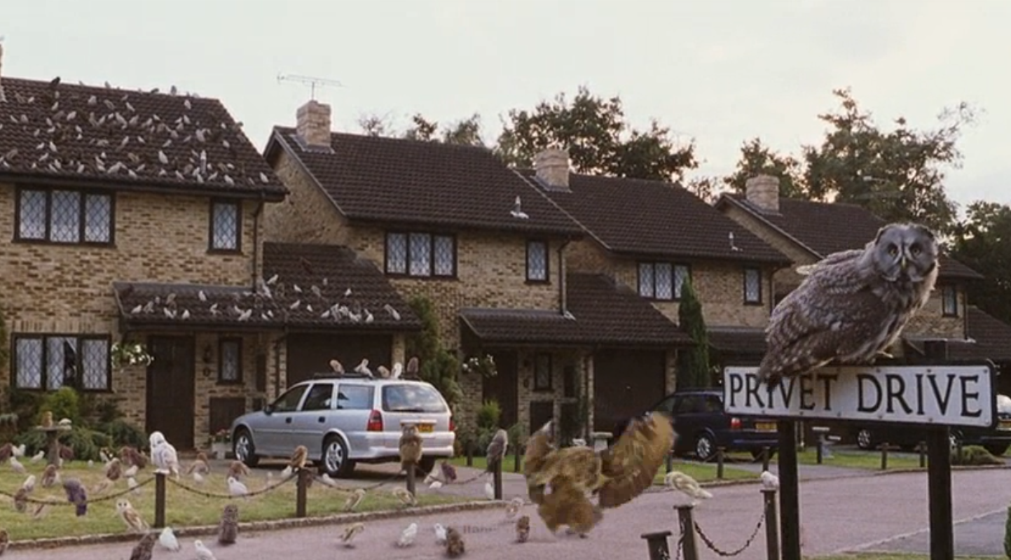 Les chouettes apportent le courrier,sur cette image elles apportent la lettre d'admission de poudlard à Harry,elles sont beaucoup parce que l'oncle vernon,ne veux pas donner ses lettres a Harry.un jour la mer de Ron lui a envoyer une beuglante c'est une lettre qui cri sur la personne à qui on l'envoie.
